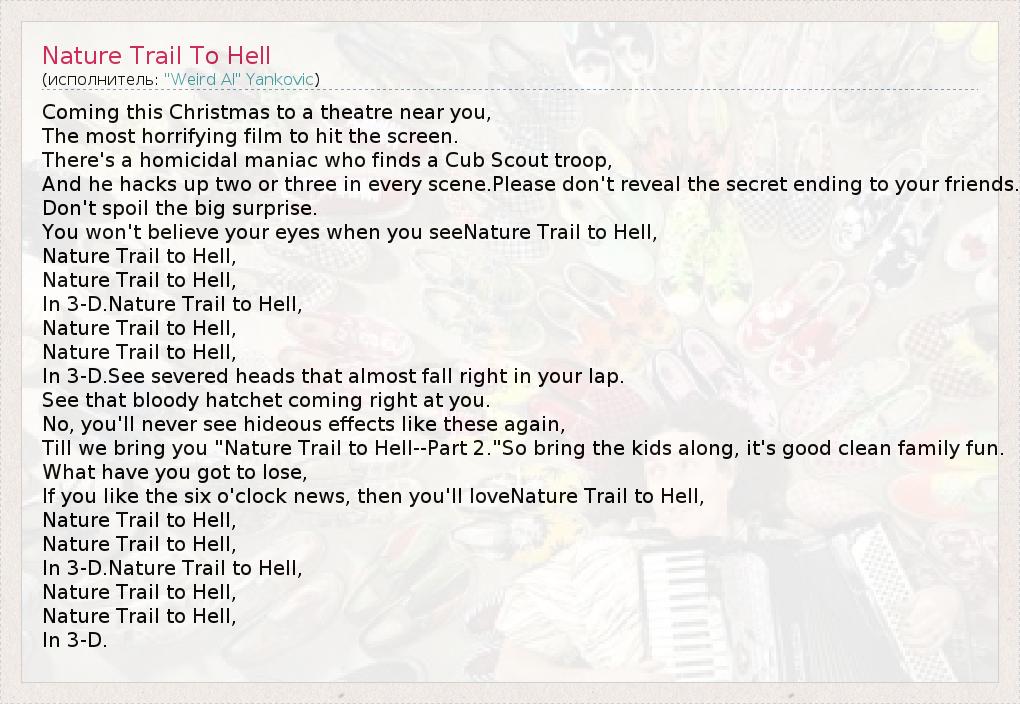 А как ты думаешь, о чем песня "Nature Trail To Hell" ?