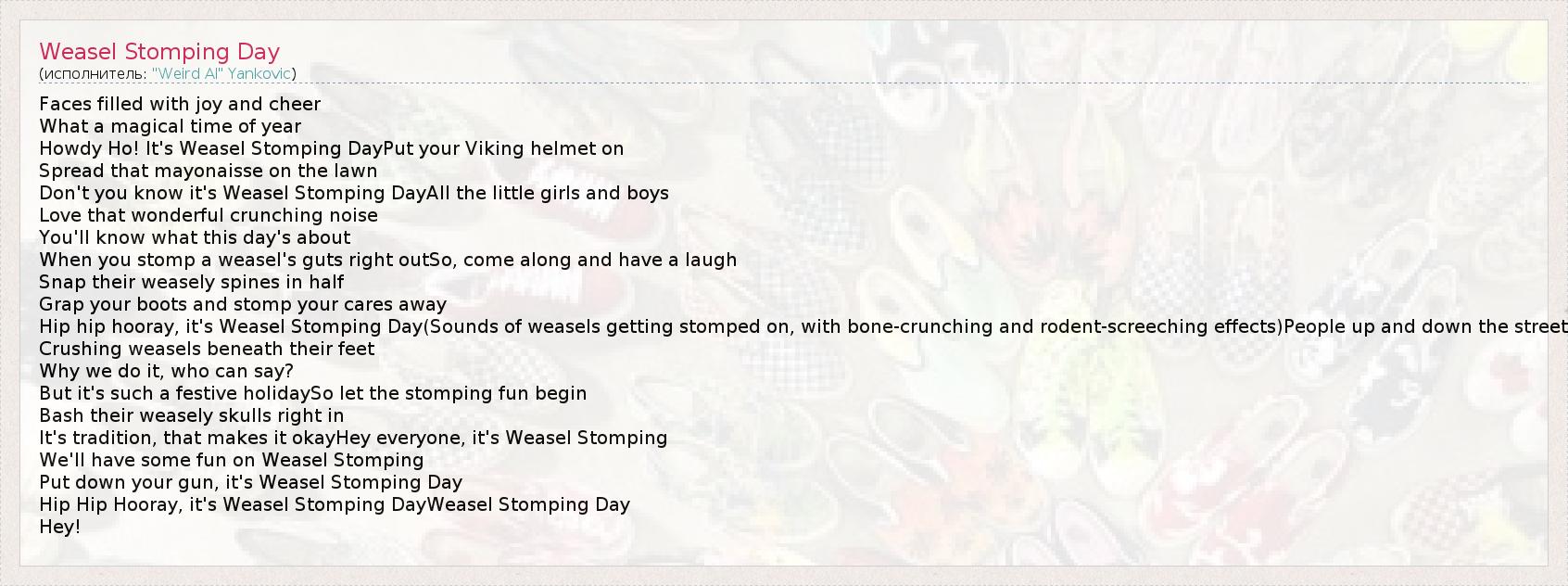 А как ты думаешь, о чем песня "Weasel Stomping Day" ?