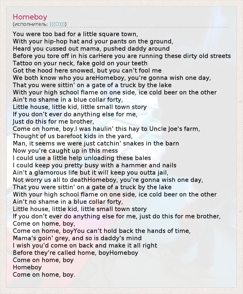 А как ты думаешь, о чем песня "Homeboy" ?