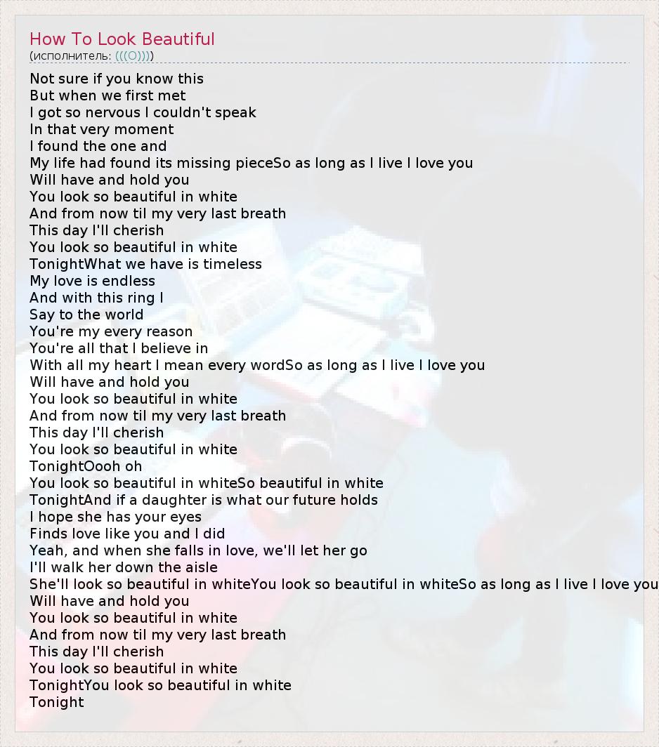 ГлавнаяИсполнители(((О)))How To Look Beautiful