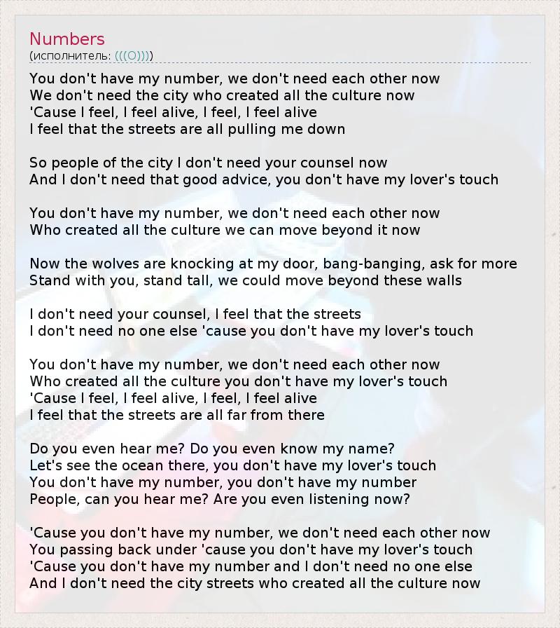 'Cause you don't have my number and I don't need no one else