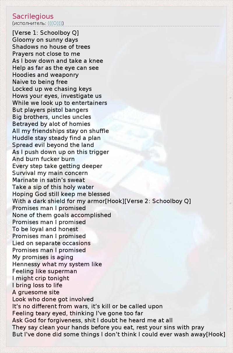 А как ты думаешь, о чем песня "Sacrilegious" ?