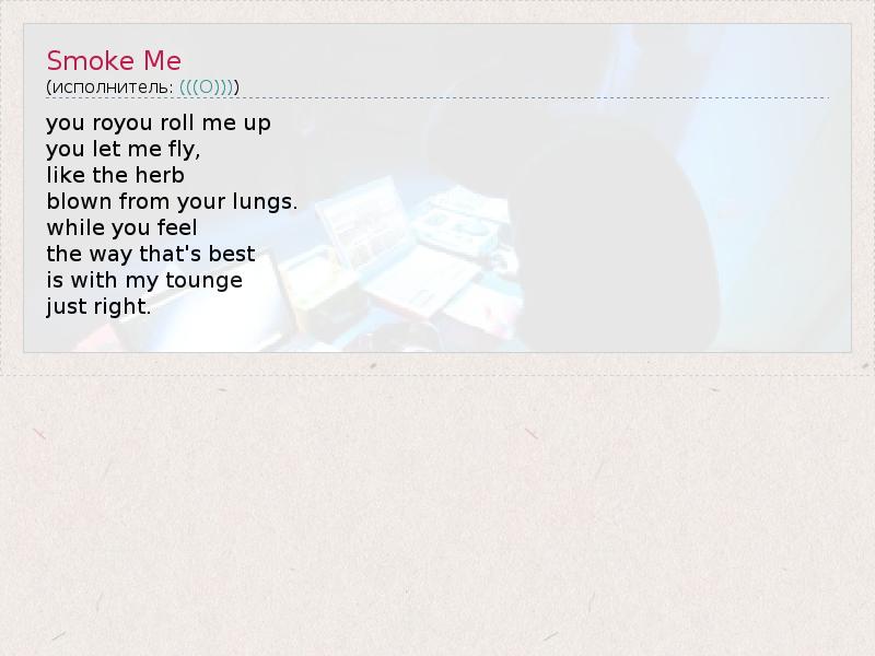 А как ты думаешь, о чем песня "Smoke Me" ?