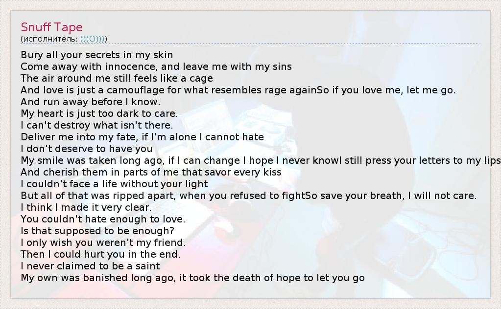 А как ты думаешь, о чем песня "Snuff Tape" ?