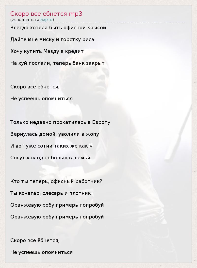 ГлавнаяИсполнителиБартоСкоро все ебнется.mp3