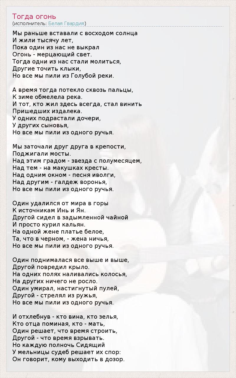 А как ты думаешь, о чем песня "Тогда огонь" ?