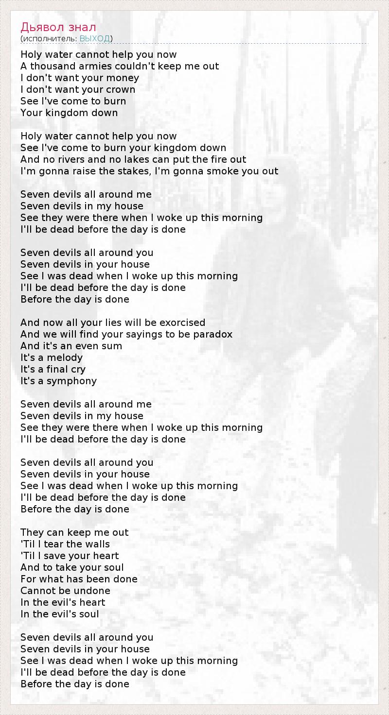 А как ты думаешь, о чем песня "Дьявол знал" ?