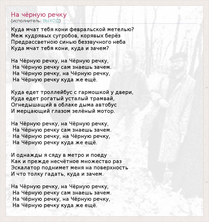 ГлавнаяИсполнителиВЫХОДНа чёрную речку