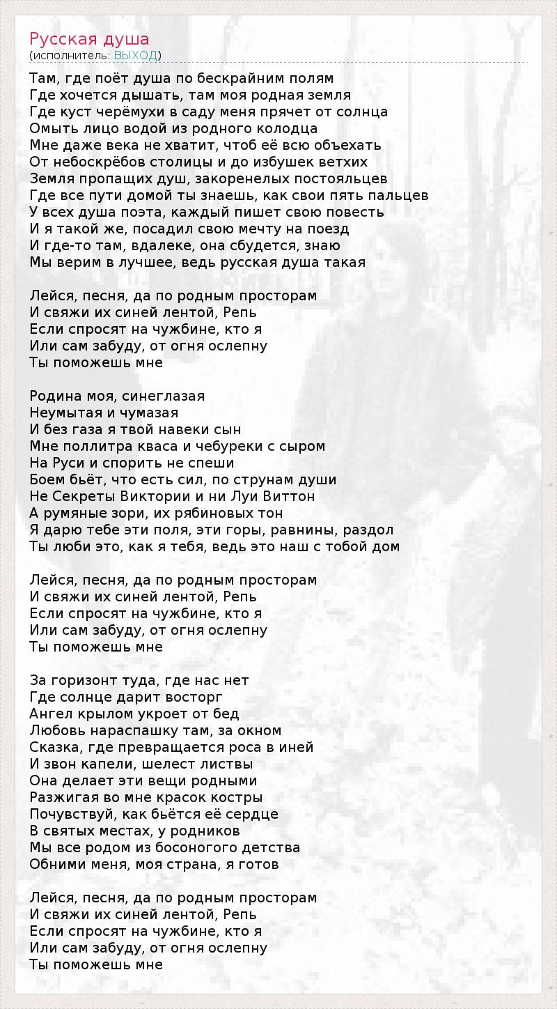 ГлавнаяИсполнителиВЫХОДРусская душа