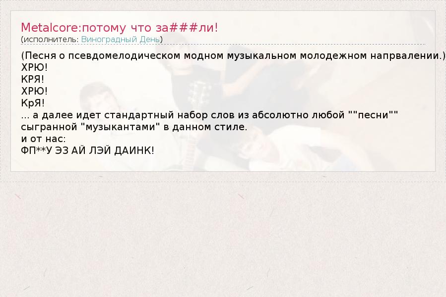ГлавнаяИсполнителиВиноградный ДеньMetalcore:потому что за###ли!