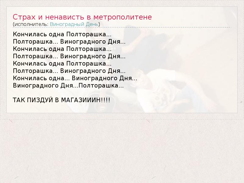 ГлавнаяИсполнителиВиноградный ДеньСтрах и ненависть в метрополитене