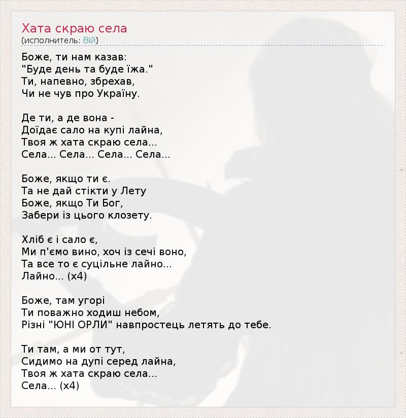 ГлавнаяИсполнителиВійХата скраю села