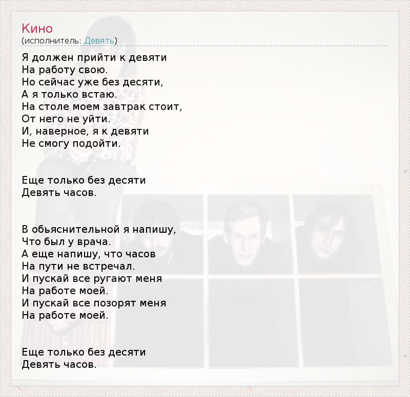 Это интересно:Первое слово, которое нужно сказать, описывая группу "Девять" - это "интеллигентность". Что бы ни вытворяли на сцене музыканты (а они скачут, кривляются, орут дурными голосами, дурачатся, по одному и группами), коллектив ни разу не нарушил незримых эстетических норм, за которыми начинается либо грубость, либо пошлость. Прочно обосновавшись на московской клубной сцене, дав... продолжение