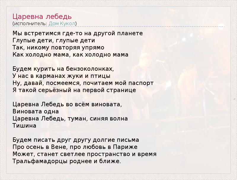 ГлавнаяИсполнителиДом КуколЦаревна лебедь