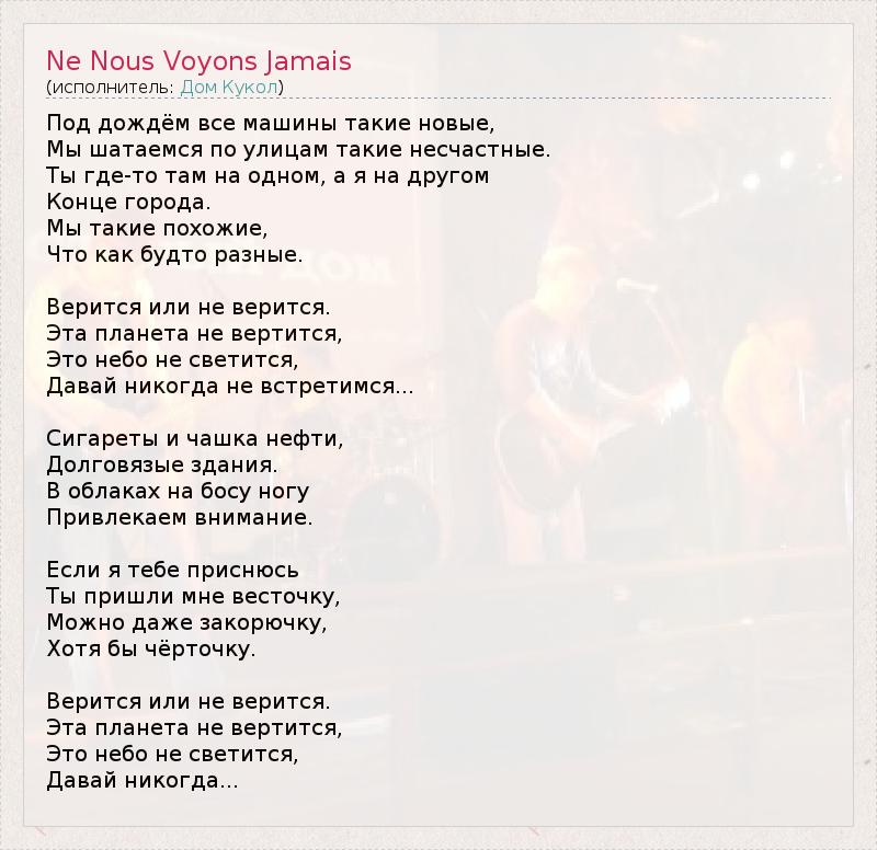 А как ты думаешь, о чем песня "Ne Nous Voyons Jamais" ?