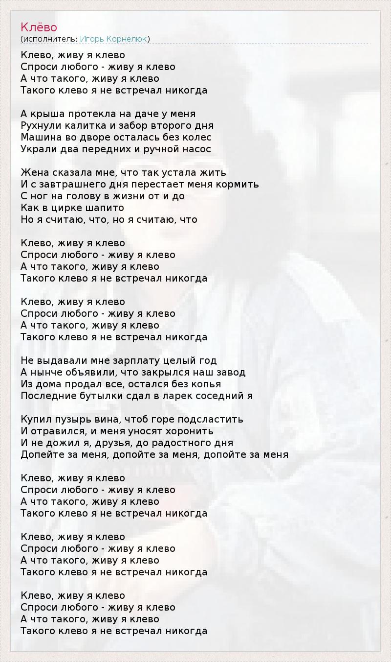 Это интересно:Корнелюк Игорь Евгеньевич (16.11.1962) — композитор, певец.Родился в Бресте. После 8 класса, В 1977 году, Игорь поступил в Брестское музыкальное училище на теоретико-композиторское отделение. Правда, учебой назвать это было трудно, поскольку он параллельно играл в рок-ансамблях, «тусовался», приходил домой под утро уставший, так что было не до теорий. Но именно в этот год преподавательница... продолжение