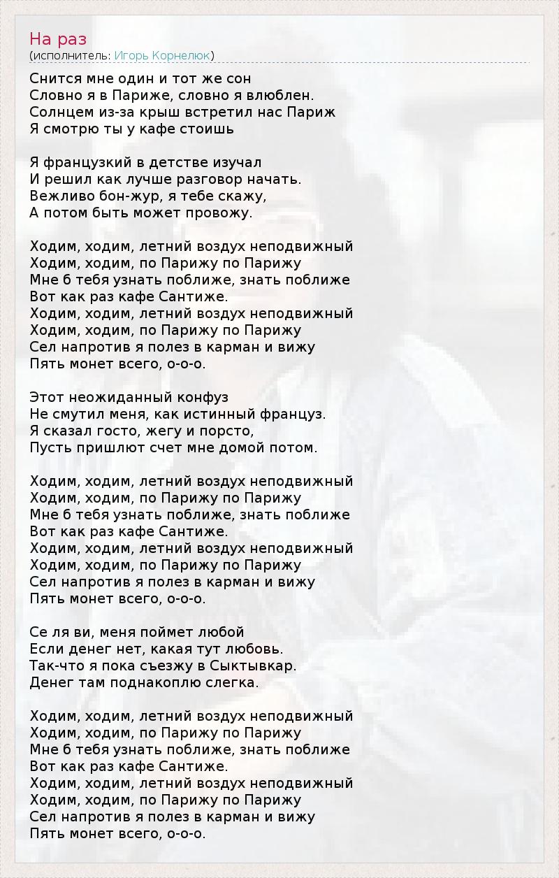 Это интересно:Корнелюк Игорь Евгеньевич (16.11.1962) — композитор, певец.Родился в Бресте. После 8 класса, В 1977 году, Игорь поступил в Брестское музыкальное училище на теоретико-композиторское отделение. Правда, учебой назвать это было трудно, поскольку он параллельно играл в рок-ансамблях, «тусовался», приходил домой под утро уставший, так что было не до теорий. Но именно в этот год преподавательница... продолжение