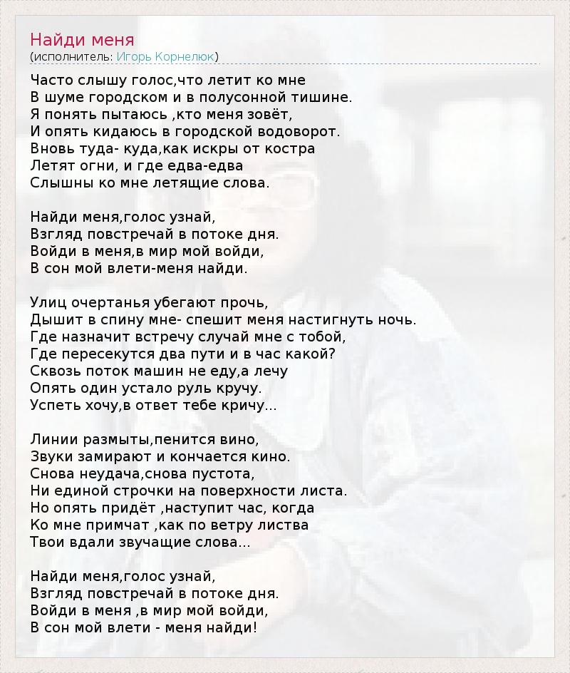 Это интересно:Корнелюк Игорь Евгеньевич (16.11.1962) — композитор, певец.Родился в Бресте. После 8 класса, В 1977 году, Игорь поступил в Брестское музыкальное училище на теоретико-композиторское отделение. Правда, учебой назвать это было трудно, поскольку он параллельно играл в рок-ансамблях, «тусовался», приходил домой под утро уставший, так что было не до теорий. Но именно в этот год преподавательница... продолжение