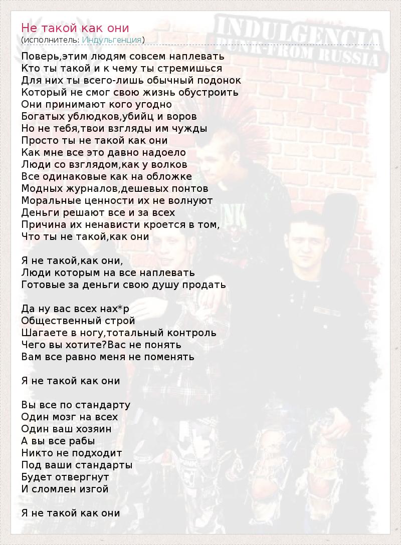 А как ты думаешь, о чем песня "Не такой как они" ?
