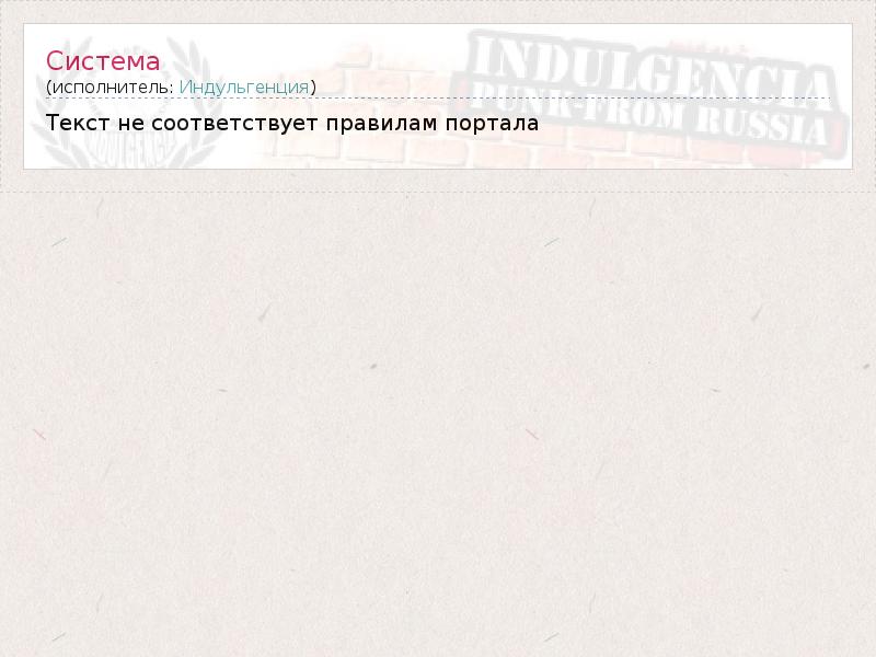 Это интересно:История:Панк коллектив "Индульгенция" создан 6 февраля 2006 года в городе Калининграде, её неизменным лидером барабанщиком Дмитрием Белым. Началом творчества стало желание внести что то своё в современную панк культуру, стремление к сохранению чистоты панк рока.Название "Индульгенция" ( в католической церкви — освобождение от временной кары за грехи) было выбрано... продолжение