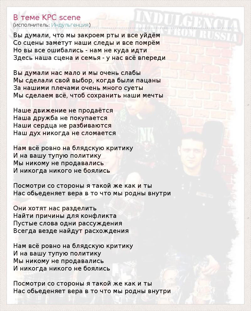 А как ты думаешь, о чем песня "В теме KPC scene" ?