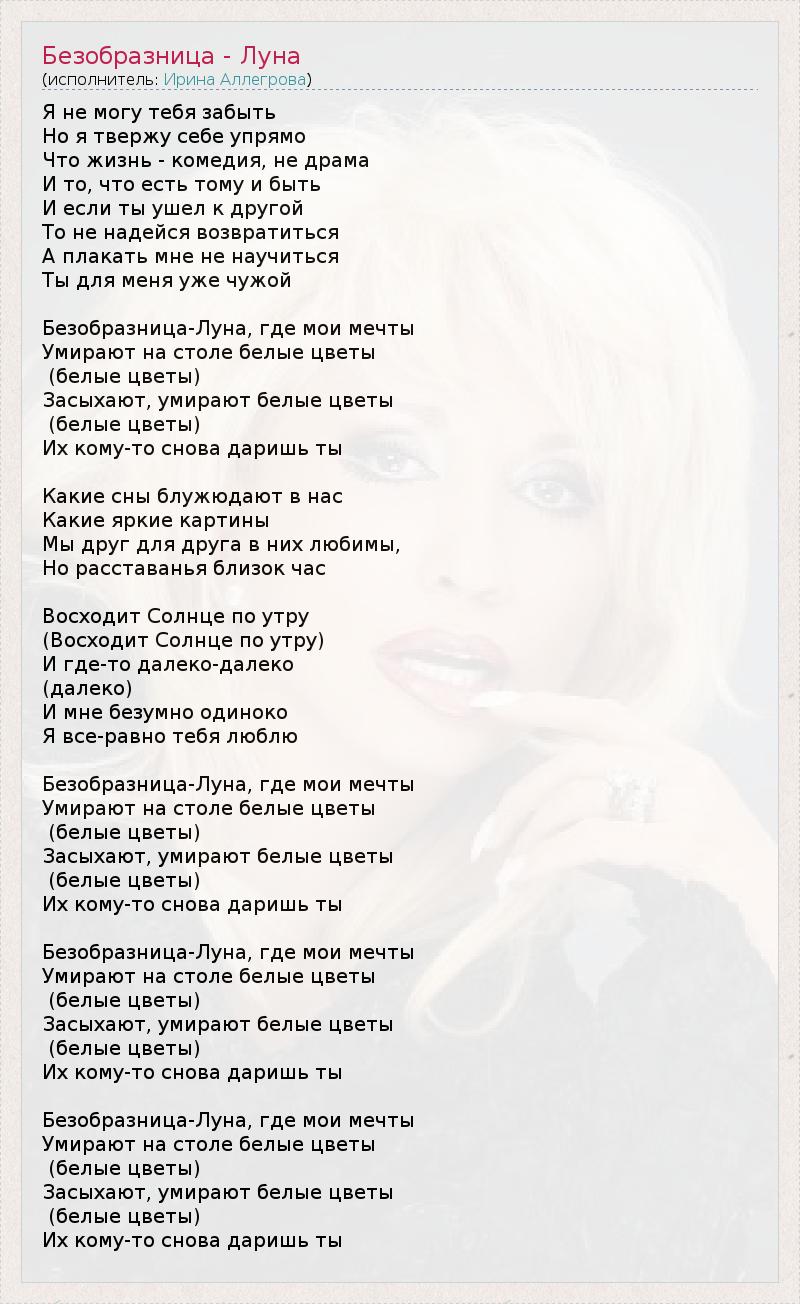 ГлавнаяИсполнителиИрина АллегроваБезобразница - Луна