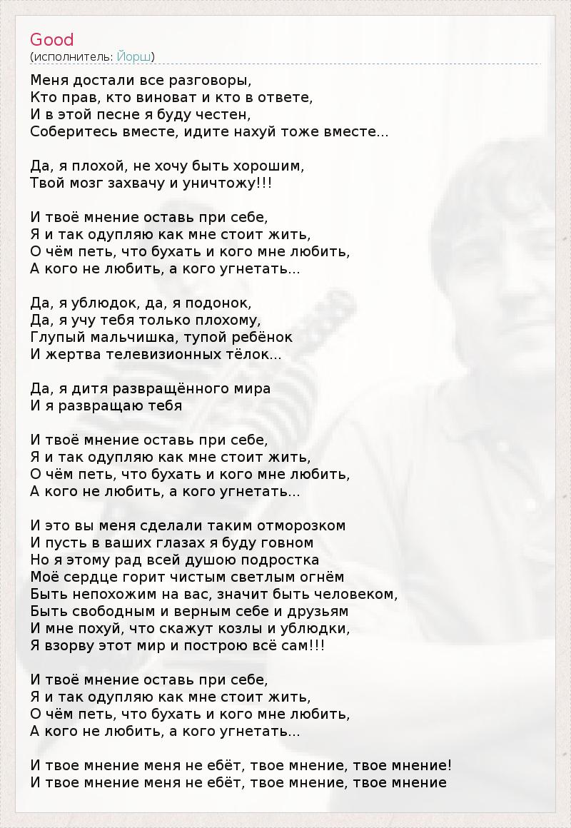 И твое мнение меня не ебёт, твое мнение, твое мнение!