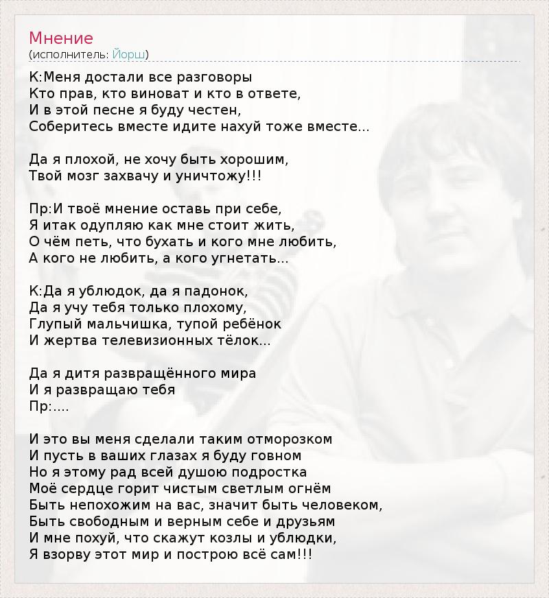 А как ты думаешь, о чем песня "Мнение" ?