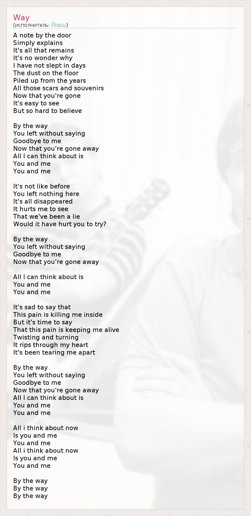Источник: http://www.amalgama-lab.com/songs/t/theory_of_a_deadman/by_the_way.html#ixzz1fwbHXjNH