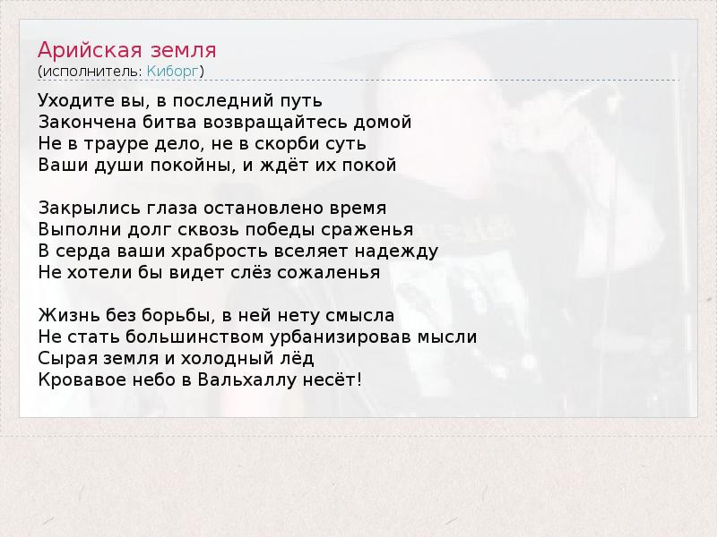 А как ты думаешь, о чем песня "Арийская земля" ?
