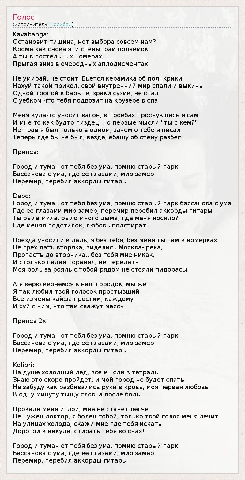 Город и туман от тебя без ума, помню старый парк бассанова с ума