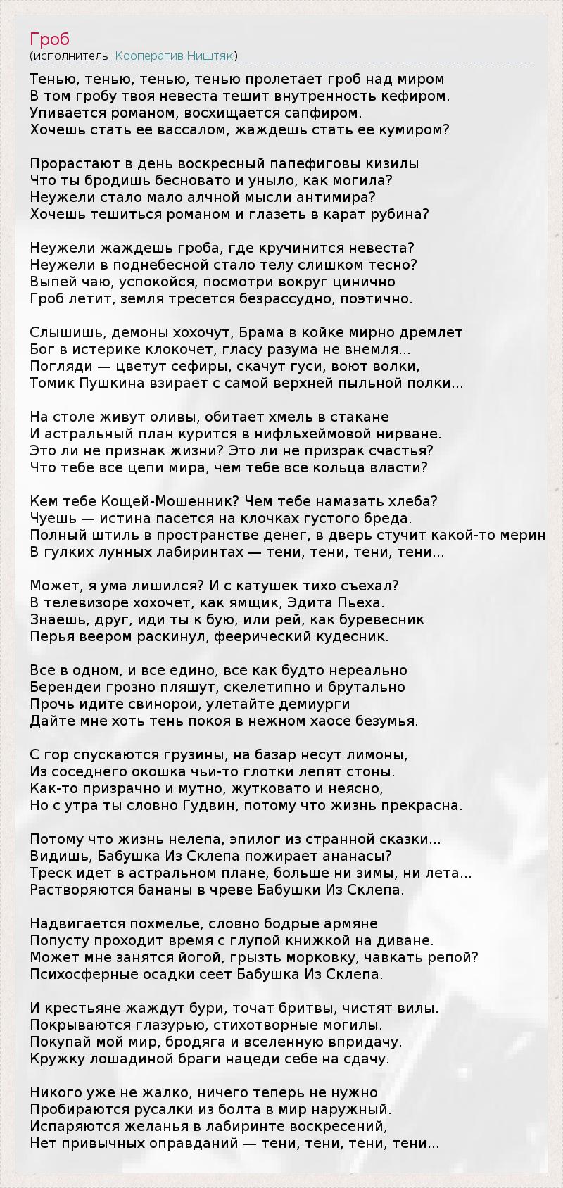 Тенью, тенью, тенью, тенью пролетает гроб над миром