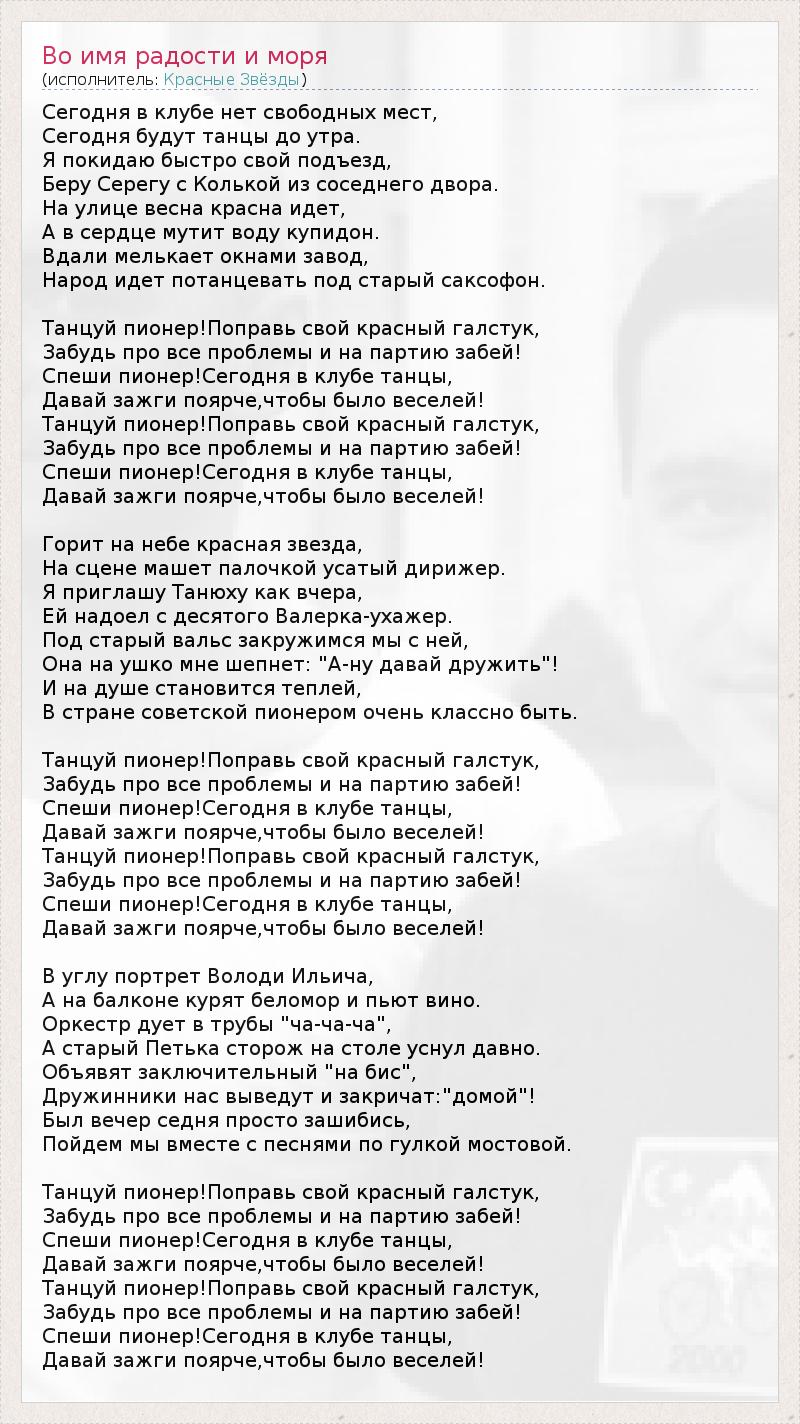 ГлавнаяИсполнителиКрасные ЗвёздыВо имя радости и моря