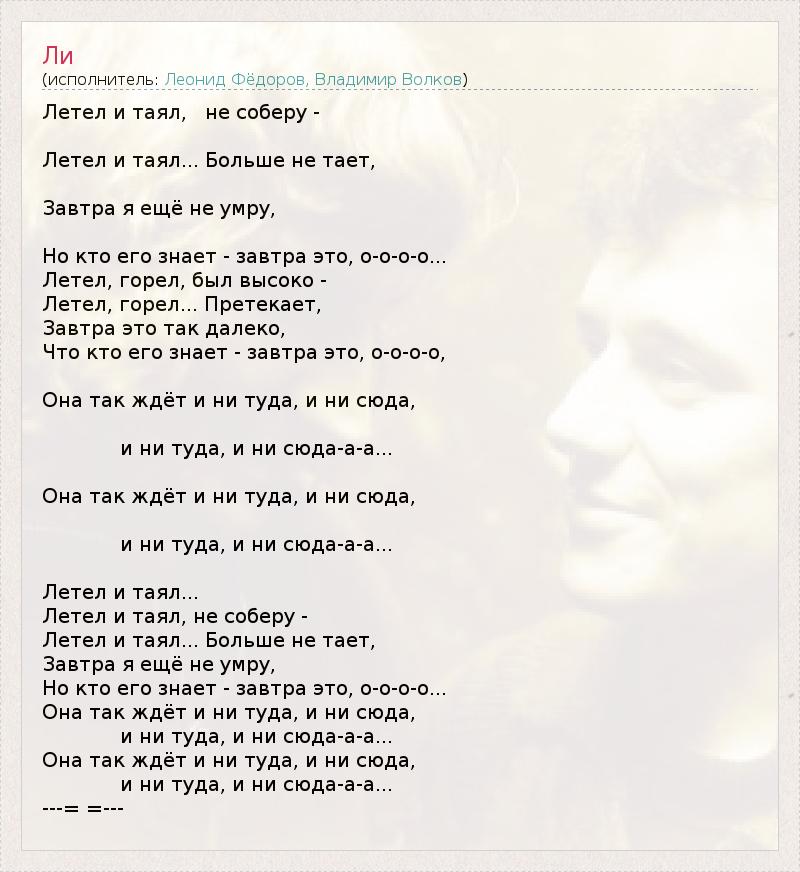 Это интересно:В конце 1990-х, не прекращая работать и выступать в составе "АукцЫона", Леонид Фёдоров стал известен и как сольный исполнитель. Его акустический дебютный CD «Четыресполовинойтонны» увидел свет в 1997 году. Последовавшая затем активная работа совместно с прогрессивным этноджазовым проектом «Волковтрио» нашла своё отражение в записях, изданных на дисках «Зимы не будет» (2000) и «Анабэна»... продолжение