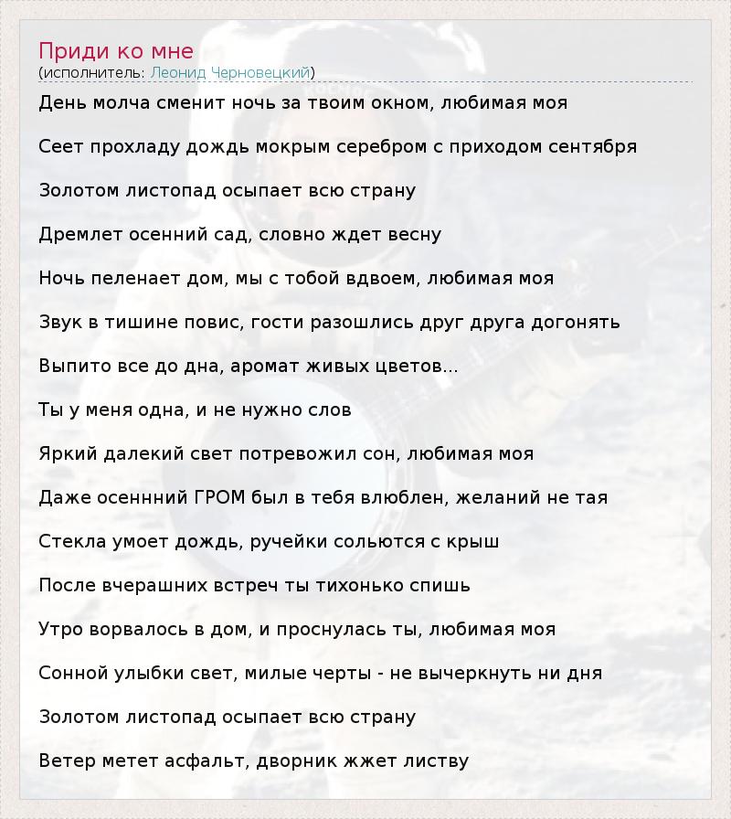 А как ты думаешь, о чем песня "Приди ко мне" ?
