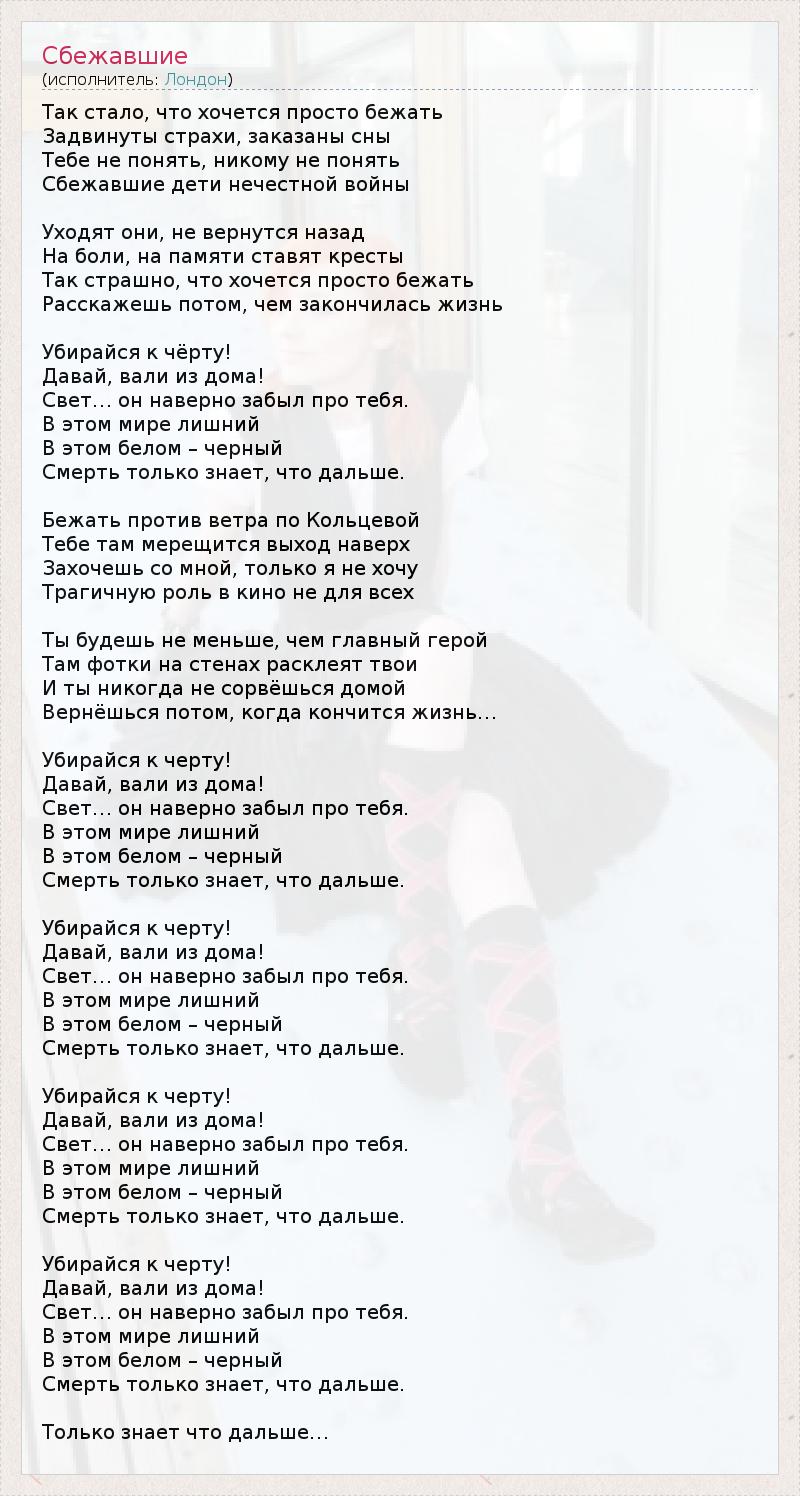 А как ты думаешь, о чем песня "Сбежавшие" ?