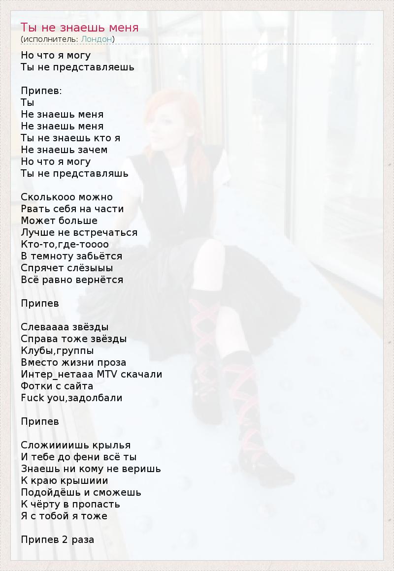ГлавнаяИсполнителиЛондонТы не знаешь меня