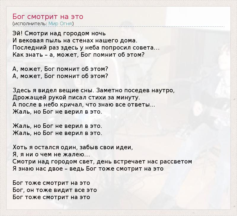ГлавнаяИсполнителиМир ОгняБог смотрит на это