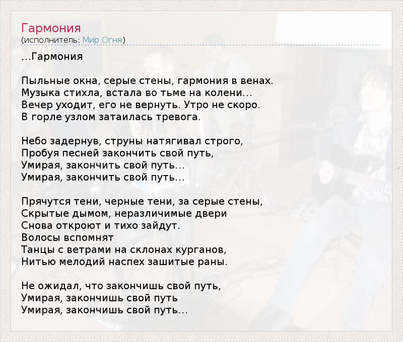 Это интересно:Мир Огня - калининградская группа, переехавшая в Москву в 2008 году. Собственный стиль музыканты не берутся определять, но в свой адрес слышат такие музыковедческие эпитеты как арт-рок, прогрессив, симфо-рок. Основные ингредиенты коктейля под названием Мир Огня - это нестандартная лирика («о любви в широком смысле, но не произнося этого слова»), повышенное внимание к аранжировкам... продолжение