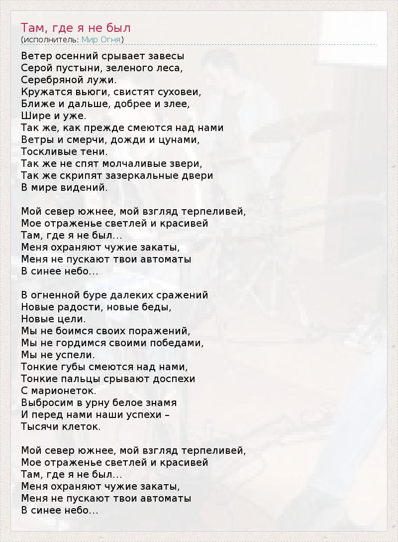 ГлавнаяИсполнителиМир ОгняТам, где я не был