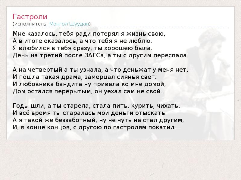 А как ты думаешь, о чем песня "Гастроли" ?