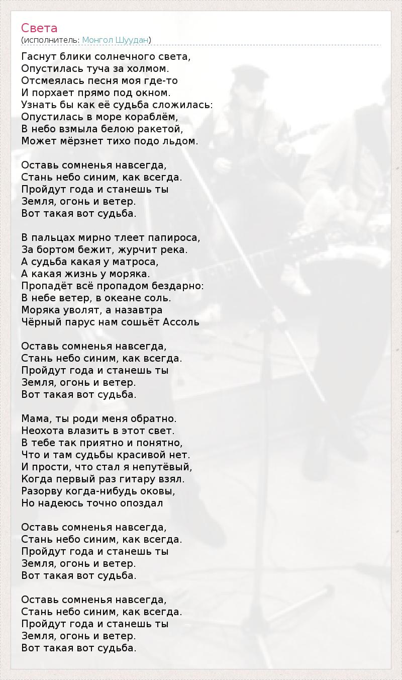 А как ты думаешь, о чем песня "Света" ?