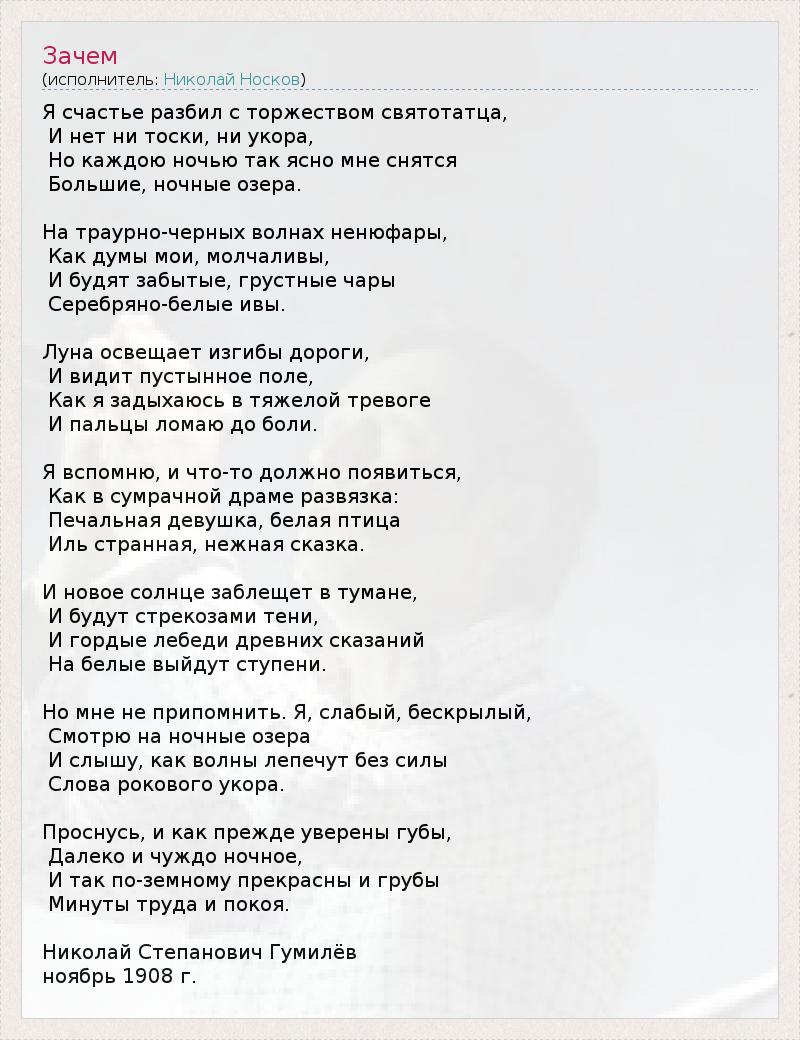 Это интересно:Николай Иванович Носков родился 12 января 1956 года в Гжатске. В творческой биографии певца - сотрудничество со многими известными в мире музыки отечественными и зарубежными композиторами и исполнителями, в том числе с Давидом Тухмановым, Александром Зацепиным,... продолжение