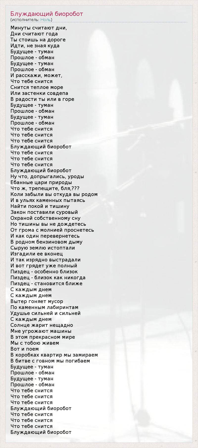 А как ты думаешь, о чем песня "Блуждающий биоробот" ?