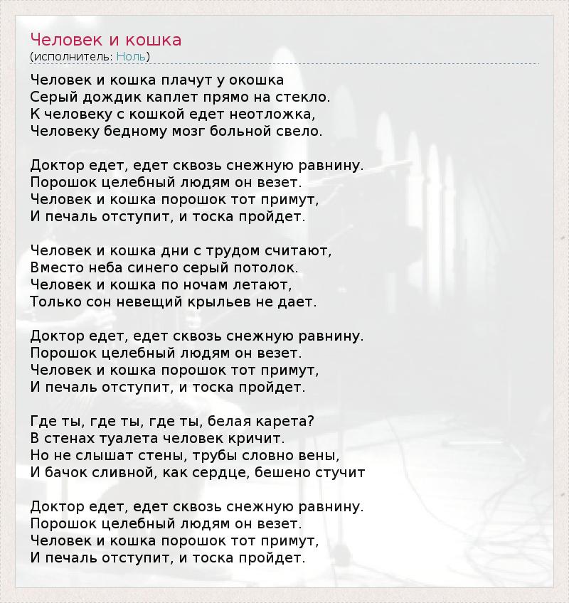 ГлавнаяИсполнителиНольЧеловек и кошка