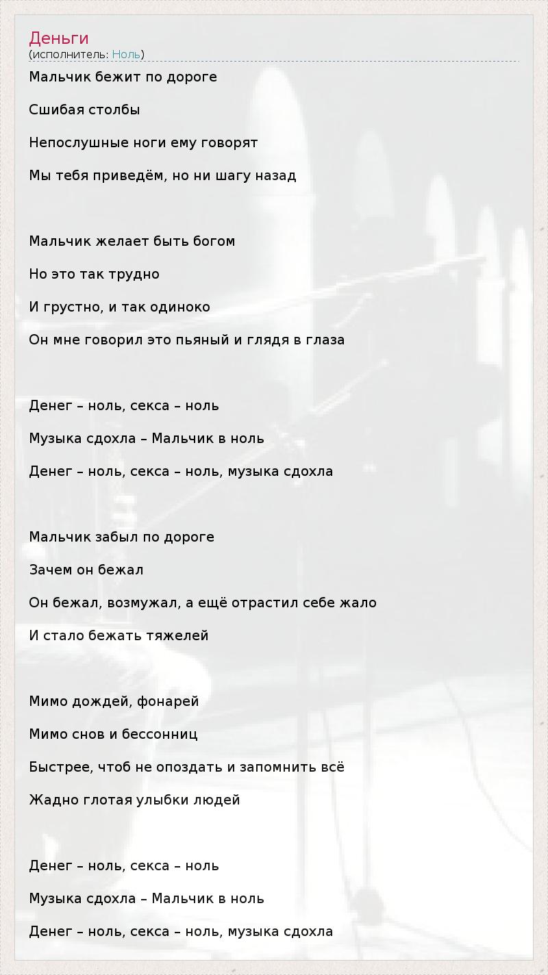 Это интересно:26 декабря 1986 года на предновогоднем концерте в ленинградском Рок-клубе состоялось первое официальное выступление группы с названием "Ноль". Сразу же, после первого концерта, стало ясно, что на небосклоне российской рок-музыки зажглась новая звезда. Последовавшие за этим события показали, что именно "Ноль" в большей степени воплотил в себе смысл загадочного понятия, именуемого... продолжение