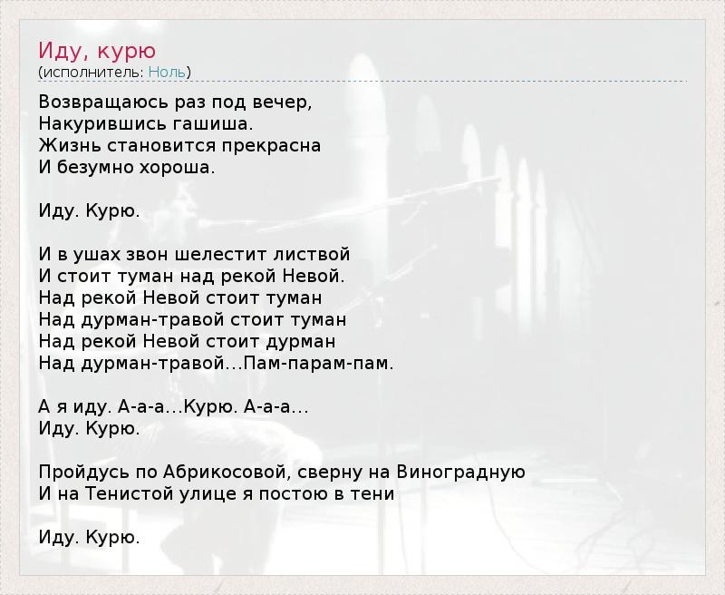 А как ты думаешь, о чем песня "Иду, курю" ?