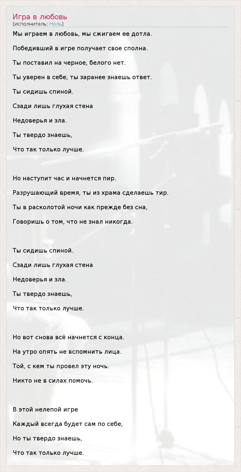 ГлавнаяИсполнителиНольИгра в любовь