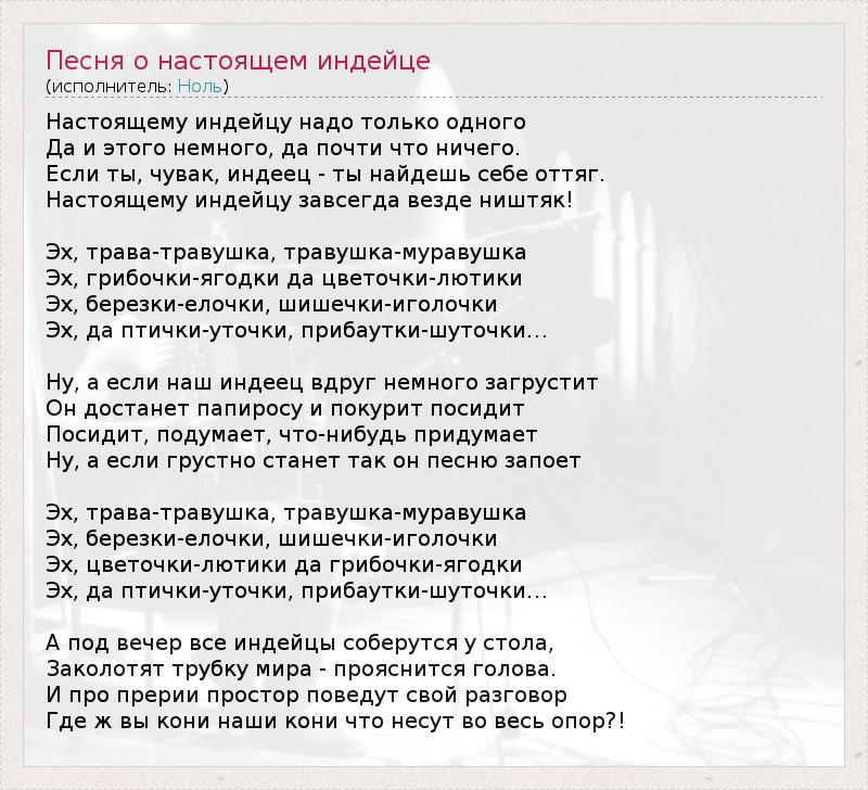 ГлавнаяИсполнителиНольПесня о настоящем индейце