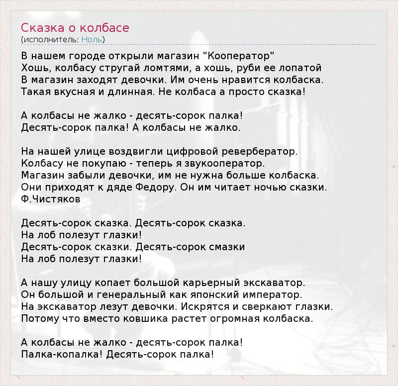 А как ты думаешь, о чем песня "Сказка о колбасе" ?